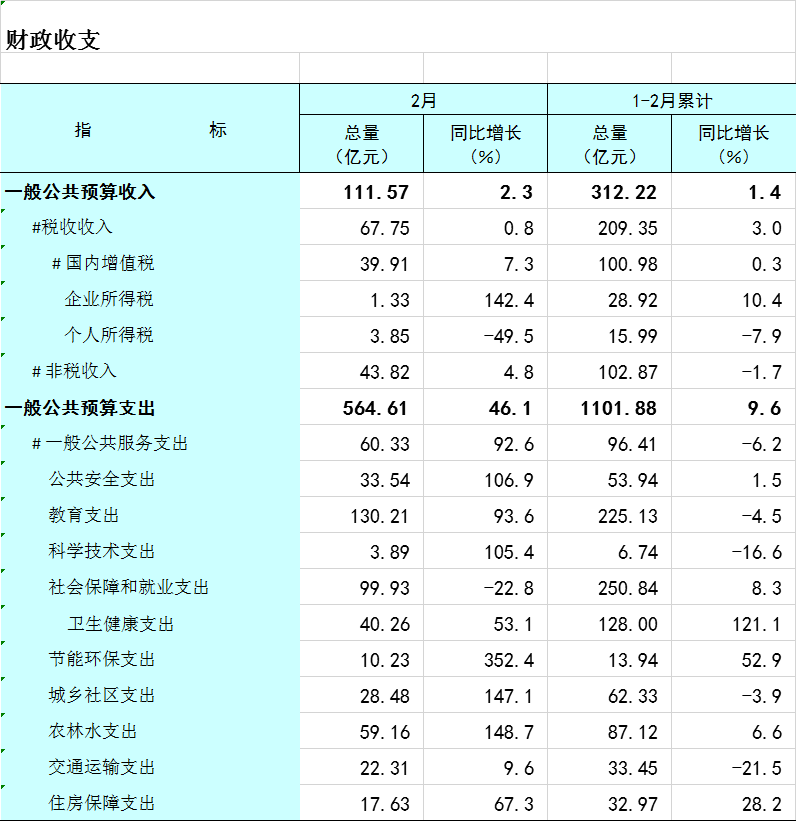 2026年1-2月广西财政收支