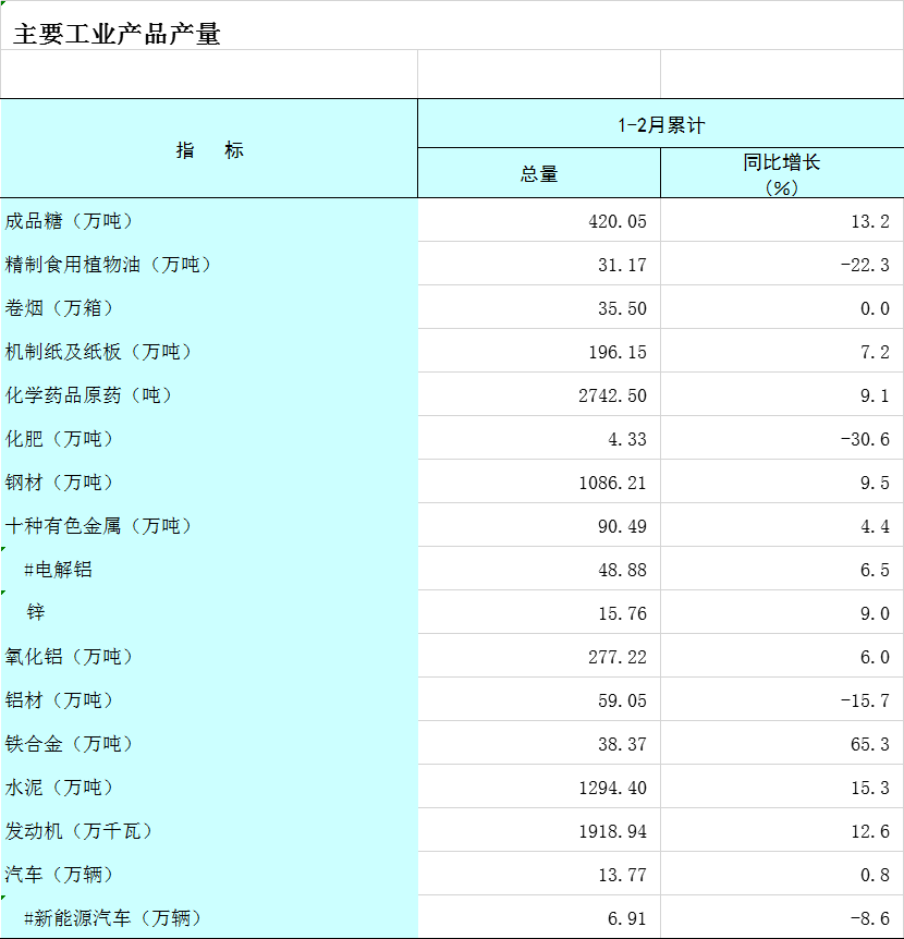 2026年1-2月广西主要工业产品产量