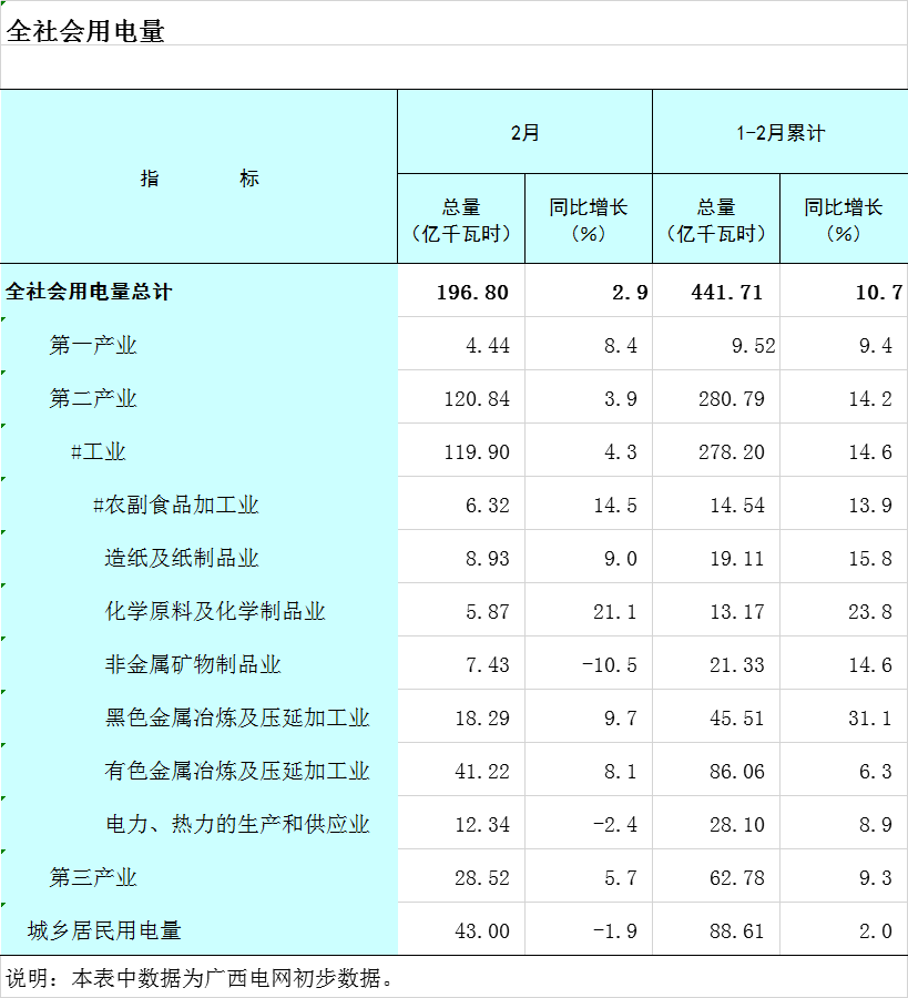 2026年1-2月广西全社会用电量