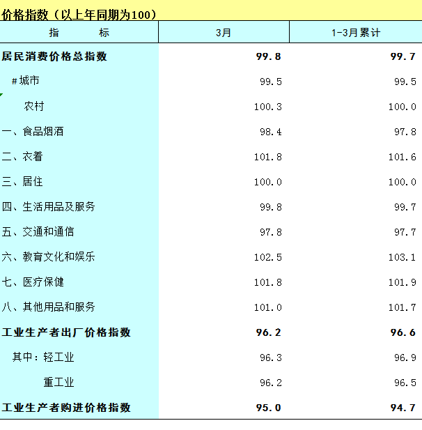 2024年1-3月广西价格指数(以上年同期为100)