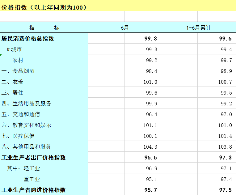 2025年1-6月广西价格指数(以上年同期为100)