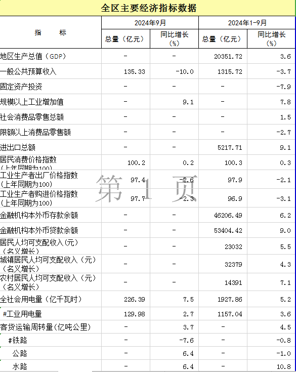2024年1-9月广西主要经济指标数据