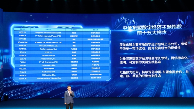 12月26日,AI赋能千行百业超级联赛收官盛典——“A超之夜”在广西南宁举行。活动现场,中证指数有限公司与广西壮族自治区大数据发展局共同发布了中证东盟数字经济主题指数,用数据直观反映东盟国家数字经济市场发展潜力。