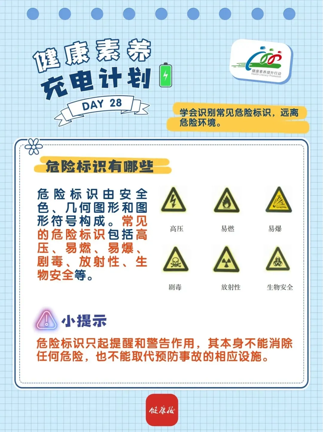 健康素养66条(2024版)(55)| 常见的危险标识有哪些?