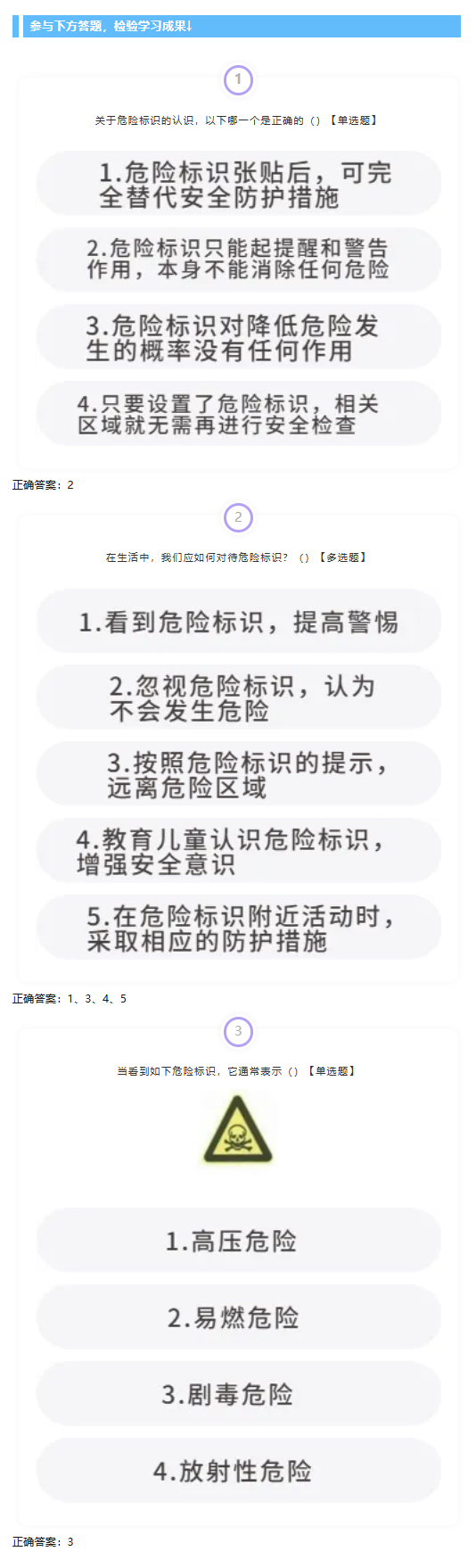 会识别常见危险标识,远离危险环境。