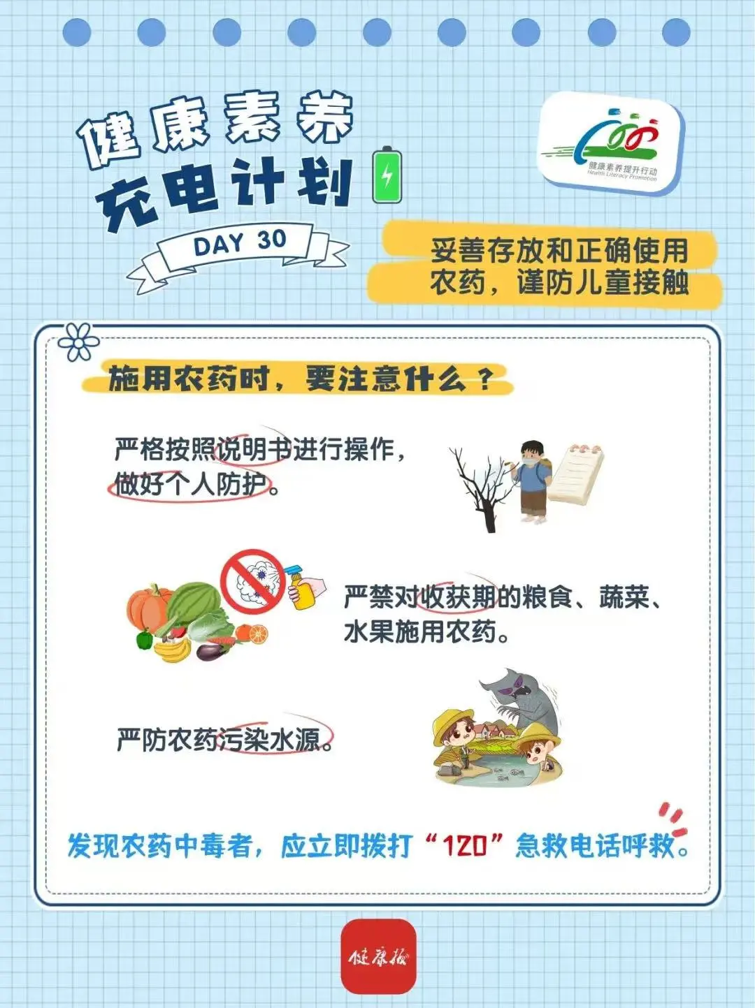 为倡导文明健康生活方式,提升居民健康素养水平,“健康八桂”微信公众号聚焦《中国公民健康素养——基本知识与技能(2024年版)》(简称“健康素养66条”)开展健康知识普及。本期内容为:如何妥善存放和正确使用农药?