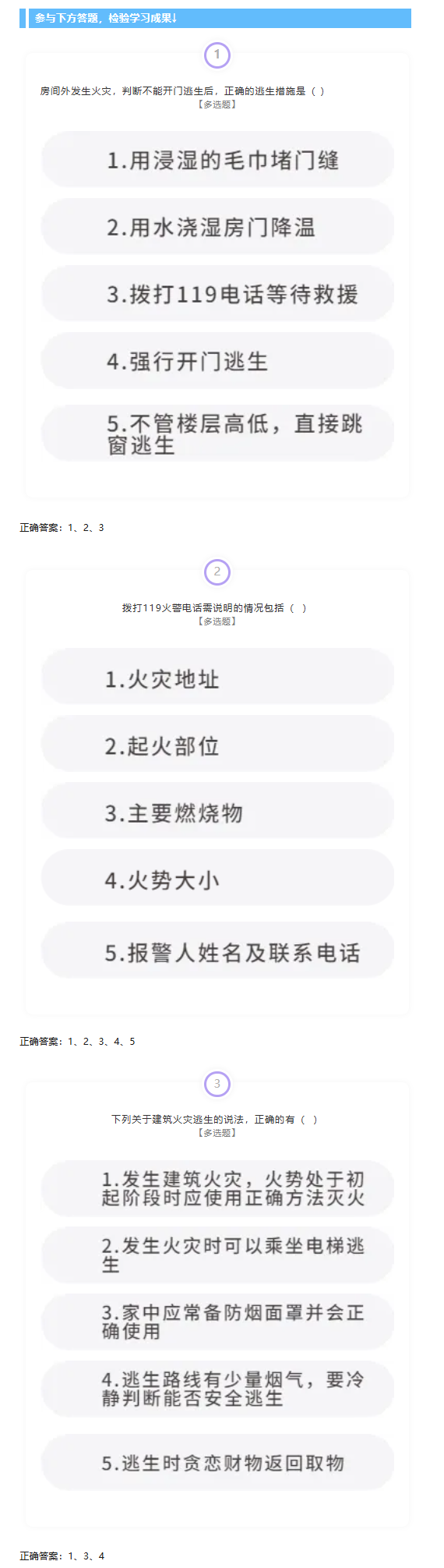 发生建筑火灾时,拨打火警电话119,会自救逃生。