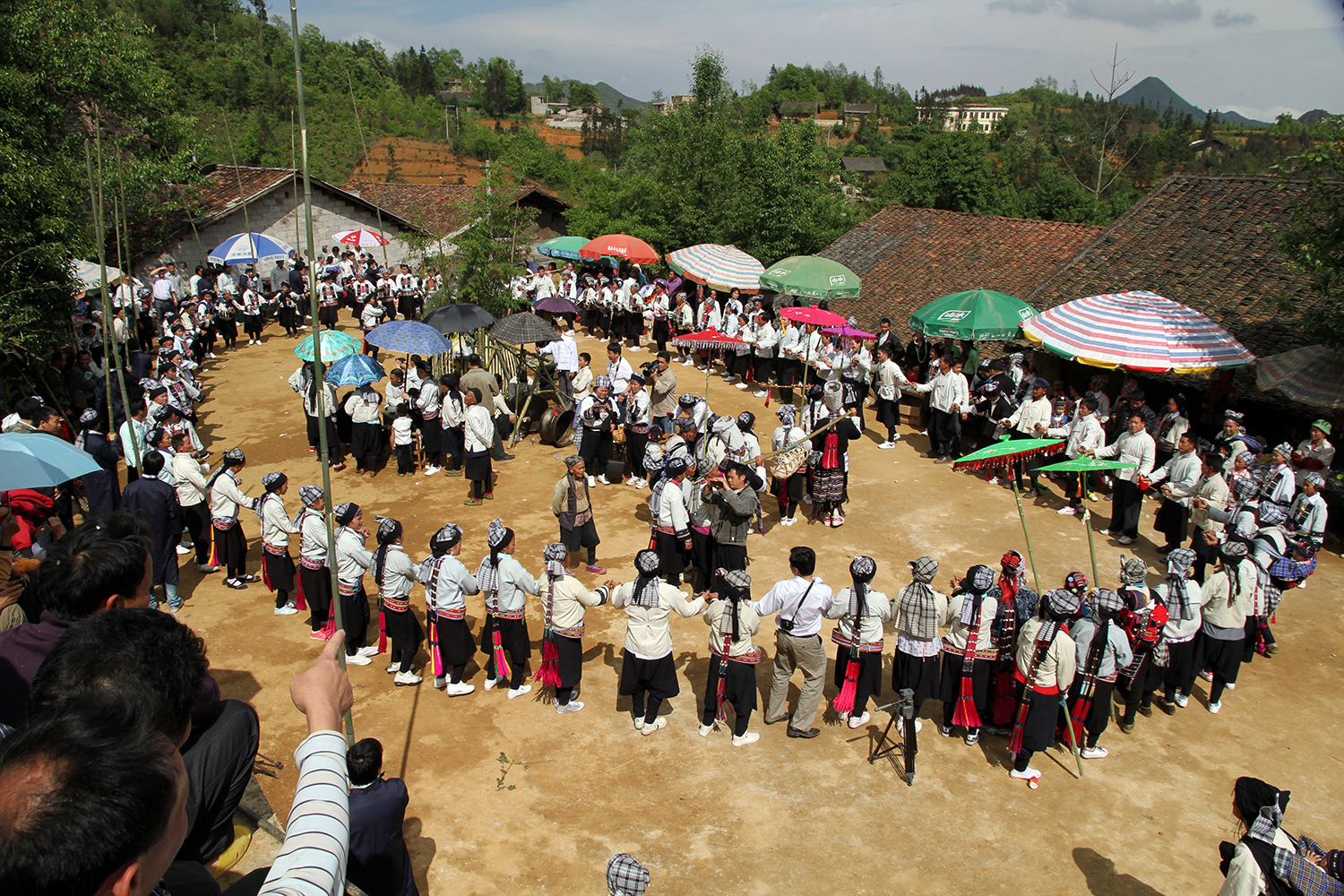 彝族跳弓节于每年农历四月初八至十一,以村寨为单位举行,由“嘈帕”(彝族长老组织,由主、副祭司及寨中年长且德高望重的七对夫妇组成)承办,活动内容包括敬祖、祭金竹、采良种、祈福、打粑、庆丰收等。其中,敬祖在跳弓节核心文化场所竹技宫举行,由腊摩(主祭司)、萨喃(副祭司)主持。祭金竹源自北宋战乱时期金竹救解族人的神话传说,族人为铭记金竹救命之恩,将其视为神圣之物故以祭祀。祭祀时,人们围绕金竹跳起彝族特有的葫芦笙(伍笙)舞,以及铜鼓舞、花伞舞、手铃舞等舞蹈,互相祈福幸福美满的生活。采良种则由祭司带领全寨人找到村里最茂盛的杉树,采摘下嫩芽,佩戴在胸前或头巾上,以祈求来年好收成。
