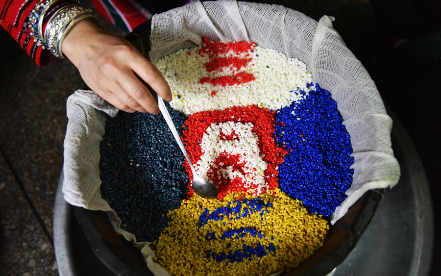 制作的五色糯米饭。吴生斌 摄