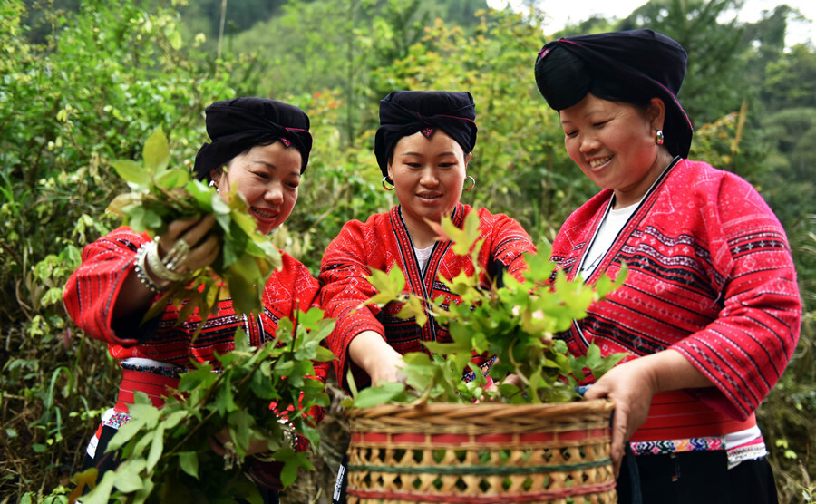 采摘制作五色糯米饭原料。蒙双伟 摄