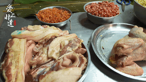 除了食材新鲜,如何处理也至关重要。腌肉需要选用上好细蒸米酒、秘制料酒、姜末葱末、精盐腌渍一至两天,方可用来包粽。
