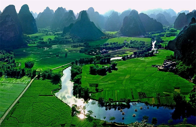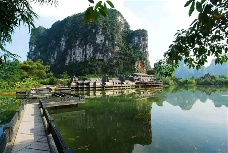 明仕田园风光景点位于大新县堪圩乡,距县城西南约53公里处,距德天瀑布40多公里。 因为有明仕河在石山小平原内曲折盘流,河两岸又有奇秀的群峰,加上小片小片的田园互相接壤,山水十分秀丽,尤其公路经过的明仕桥一带,翠竹丛丛,农舍点点,时听田歌断续, 间闻牧笛数声,几疑是世外桃源,又似是阳朔风光再现。