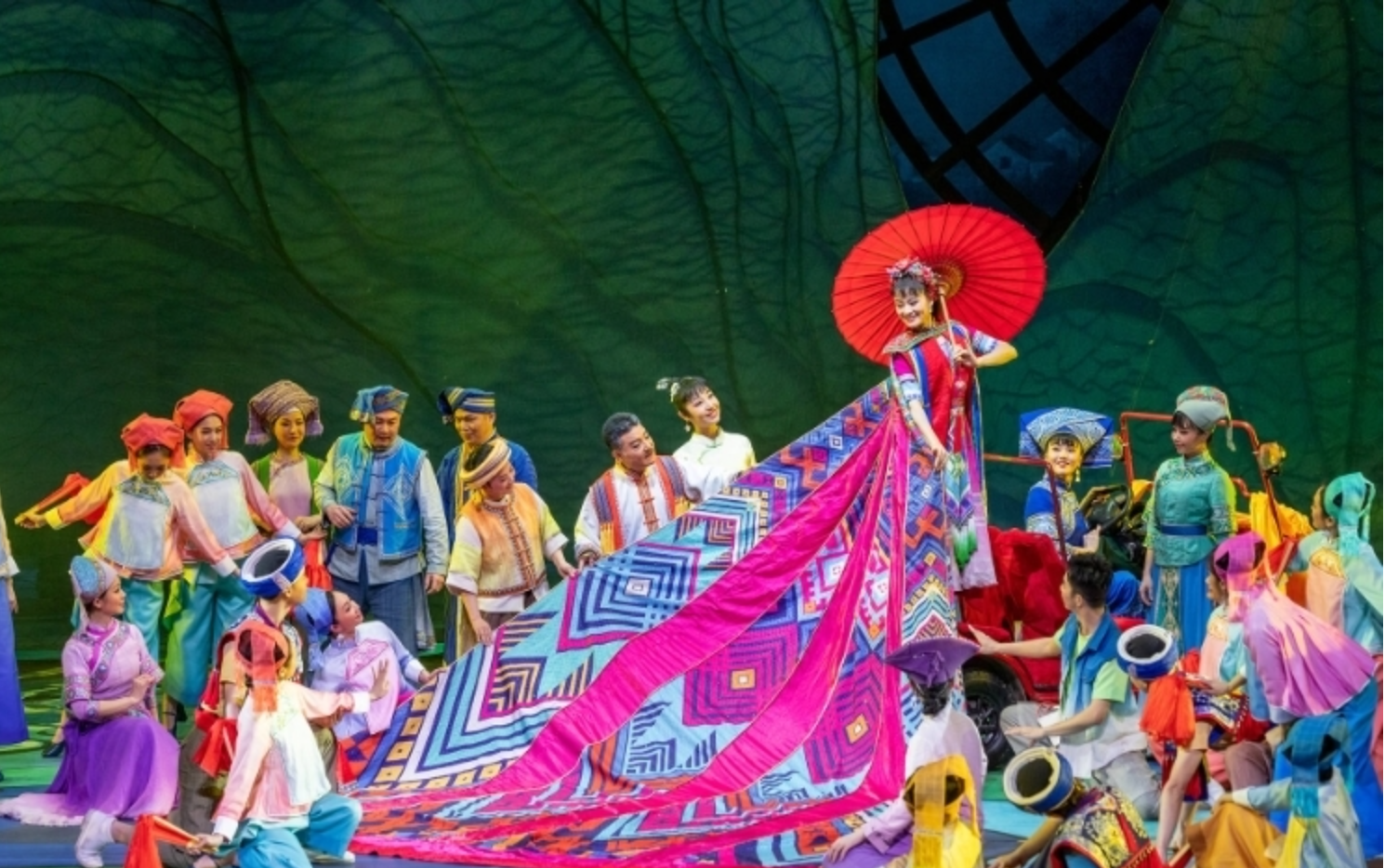 彩调剧又名采茶戏、唱灯戏、调子戏、花灯戏、“哪嗬嗨”,1955年定名为彩调。彩调剧广泛流行于广西各族民间,成为各地娱乐活动的常见剧种。最早的彩调班社是永福县罗 锦乡林村彩调班,成立于清代乾隆三十九年(1774年)至嘉庆年间(1796一1820年)。十九世纪 中叶以后,扶绥、宜山、宁明、昭平、贺县、荔浦等地陆续有彩调班建立。民国以后更为普 遍。新中国建立后,又有新的发展。仅宜山一个县,1984年底就有业余彩调剧团50多个。业 余彩调剧团(5人左右) 一般在秋收后集中排练,春节期间走村串寨去演出,不议酬金,由邀 请者提供伙食,演出时或演出后给一个封包(用红纸包钱,俗日“利市”)以表谢意。崇左、 武宣等地农村,若有进新居、吃寿酒、结婚等喜事,常请彩调队去演戏助兴。壮族彩调剧队 演出常用桂柳官话、白话和壮话演唱,甚至临时增加本地山歌对唱。演出场地一般设在屋前 或圩亭里,铺上一张晒谷的竹笪当舞台,演员在竹笪上边舞边唱。开端为“开台茶”,宣告 开台演出,向观众致意,接着为“乃茶”,托着烟、茶送到东道主面前请饮茶抽烟,东道主 则回敬封包钱。接下去才正式演出小戏。宜山农村在春节演彩调有拜花习俗。各家各户在厅 堂八仙桌上摆上一束鲜花,花丛中放着“利市”,桌上还摆上糍粑糖果之类。前来拜花的彩 调队派出四个粉装打扮的女演员在锣鼓声中载歌载舞进到厅堂表演《拜新年》,恭贺主人新 年快乐,万事吉祥,然后用歌舞形式道出桌上的名花。拜花结束,主人请彩调队品尝糖果年 糕,把“利市”送给拜花演员。就这样挨家挨户地拜下去。汉族彩调剧演出有“打加官”的 习俗,即一旦角演员在锣鼓和音乐声中舞步出场,手捧托盘,托盘上盛着加官帽,表示全体 演员对前来观戏的父老兄弟加官晋爵的预祝。托盘里还装着邀请者和观众送给彩调队的礼品, 幕后司仪宣读赠送者的姓名和礼品名称,台上演员就把礼品向观众展示。礼单报完之后,司 仪代表演出队向邀请者和观众讲“彩话”致谢,最后一句彩话是“加官谢赏”。建国后,这 种习俗趋于简化。1959年彩调剧《刘三姐》在南宁汇报演出,引起极大反响。随后经过加工 完善,脱颖而出,名扬海内外。