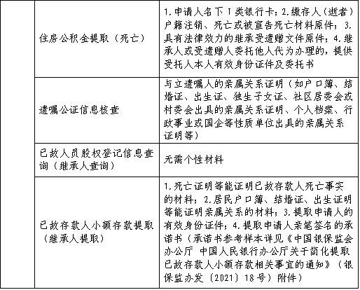 6.住房公积金提取:继承人或受遗赠人持有缴存人(逝者)死亡等相关材料,并取得具有法律效力的继承受遗赠文件,且缴存人(逝者)的个人住房公积金账户为封存状态。