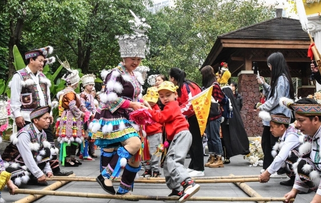 跳竹竿是壮族人民的民族传统体育项目之一,同样也是黎族、苗族、佤族、傣族、景颇族和台湾高山族等少数民族群众喜爱的群众体育活动,已有上千年历史。跳竹竿源于生产生活,动作简单易学,男女老幼均可参与。