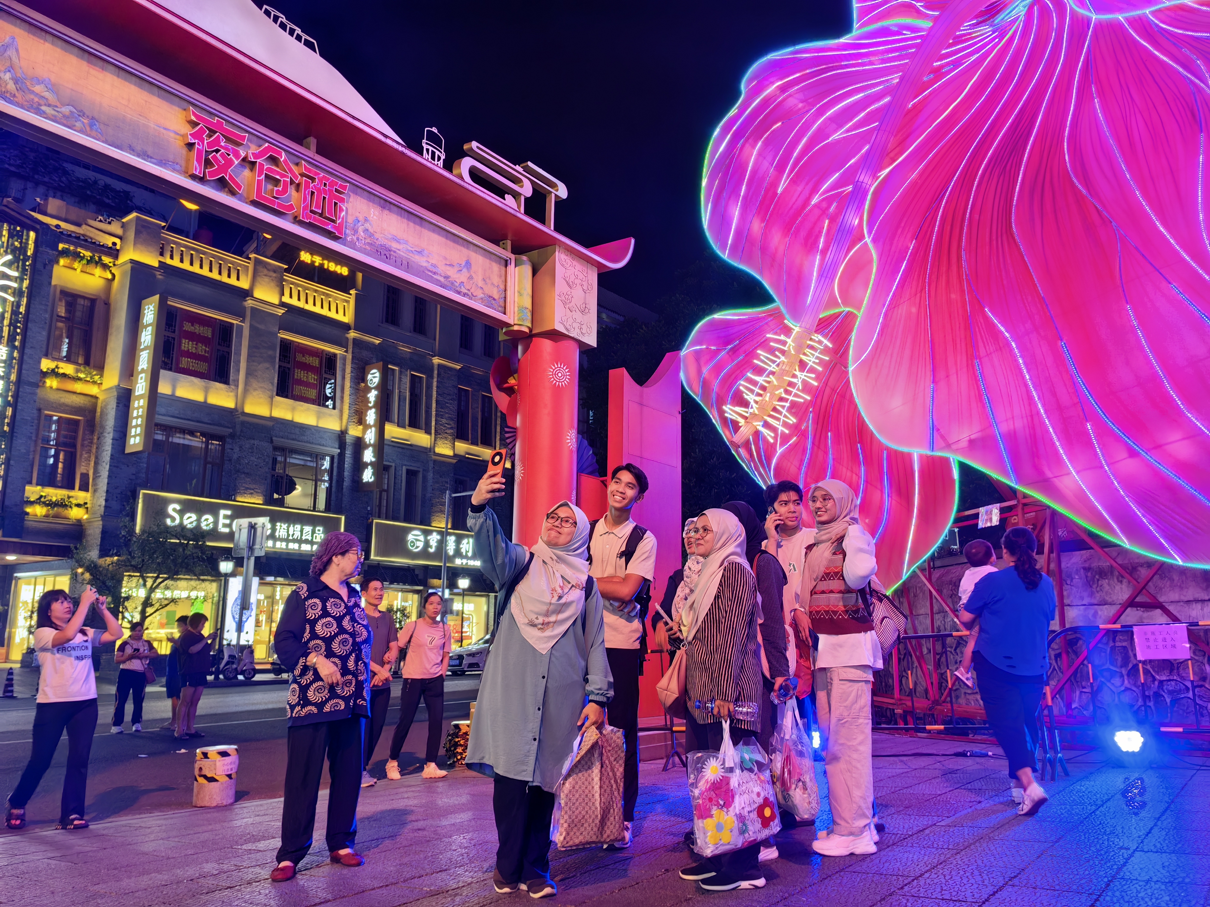 东盟客商在南宁市三街两巷历史文化街区购物、打卡。