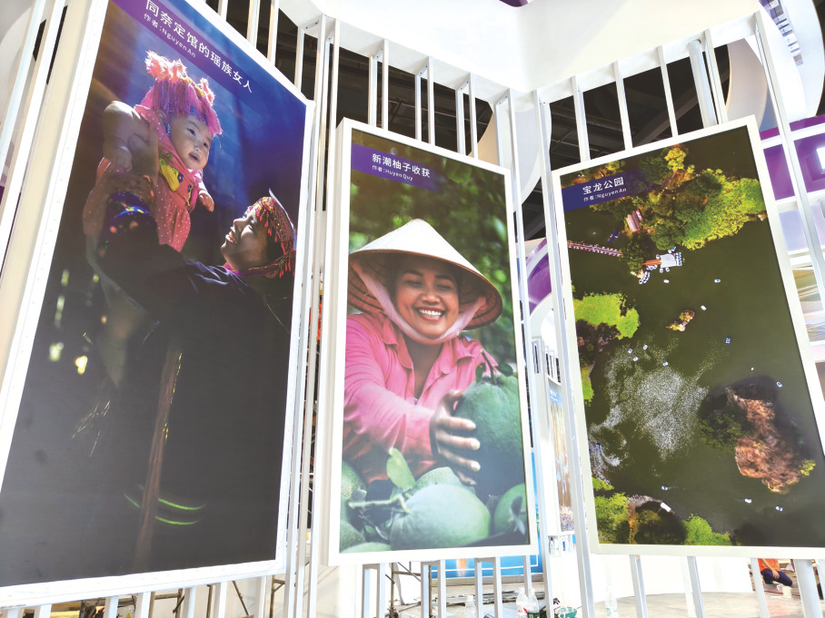 记者走进越南“魅力之城”同奈省展区,现场一片忙碌。展区造型整体呈圆弧形,展区内通过大幅展示板与屏幕,以图文形式生动呈现丰富的内容,既有同奈福安港口的繁忙景象,也有同奈的桥梁、镇边文庙等人文景观,还有当地生产生活场景,全方位展现了同奈省在经济、农业及文化旅游等领域特色。