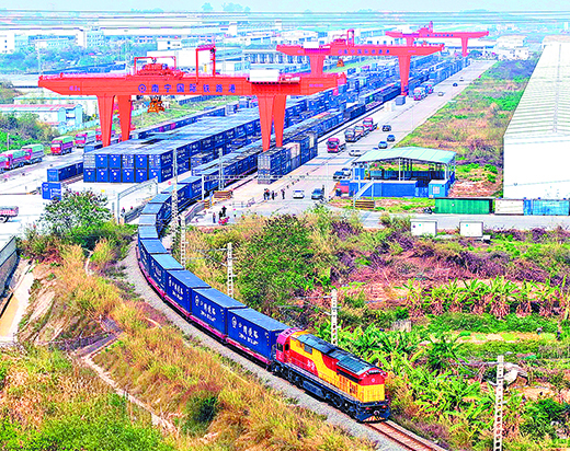 2017年5月10日,南向通道“渝桂新”铁海联运下行测试班列载着21个集装箱从重庆团结村中心站始发,两天后抵达广西北部湾钦州港,再出海运往新加坡等国家和地区。