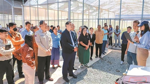 2025年12月10日,广西援柬埔寨现代农业技术合作减贫项目智慧蔬菜大棚及其附属设施移交仪式在柬埔寨磅清扬省罗列巴尔县乌塔赛村举行,工作人员介绍智慧大棚功能和使用方法。刘建文 摄