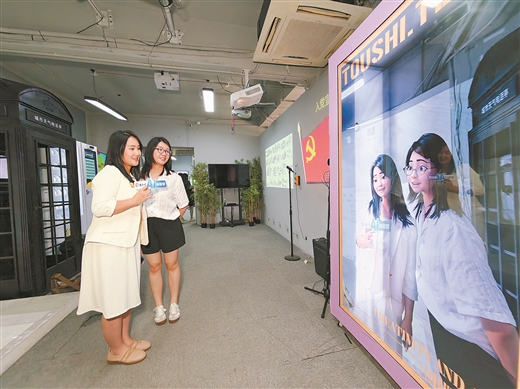 广西云-广西日报AI体验官在南京投石科技有限公司投石光影艺术馆体验AI漫画变脸透明屏,通过AI大模型训练可以实现人脸头像的实时动漫变化。