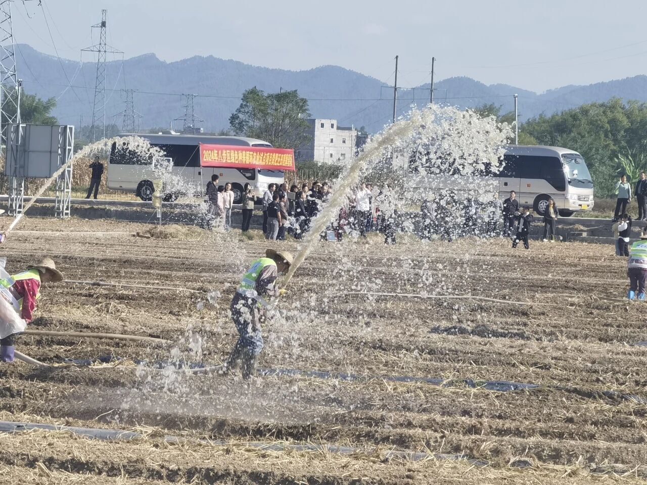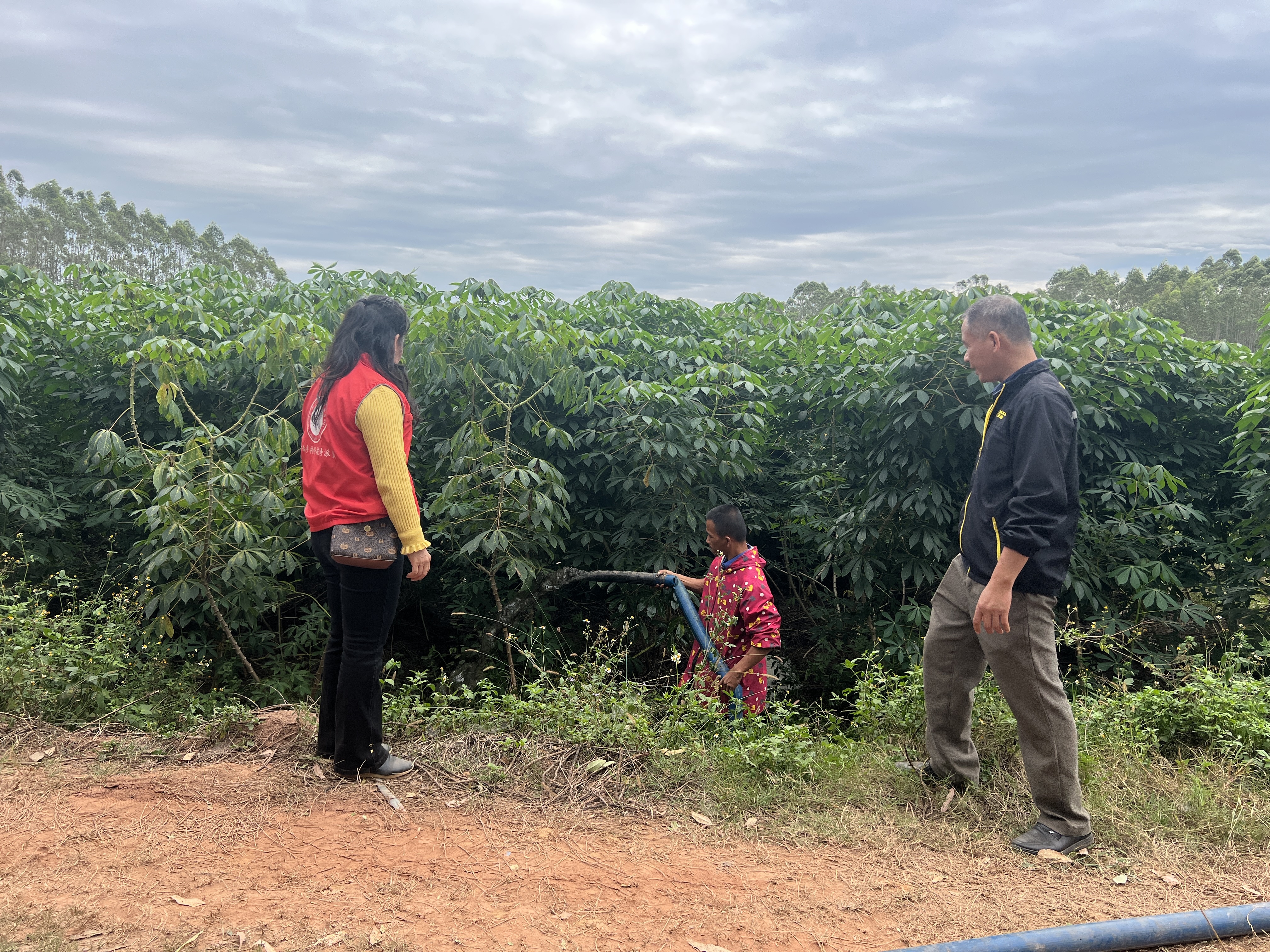 八步区东融(供港)蔬菜基地内工人们正对畜禽养殖粪污固肥还田。八步区委宣传部供图