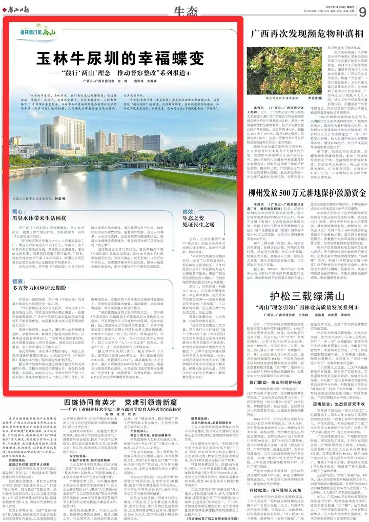采访中,他和记者一行漫步在渠边,只见清水缓缓流淌,岸边草木葱郁,居民的笑声回荡在渠旁——这条承载着居民期盼的“幸福渠”,正以崭新的面貌,见证着玉林市的生态之变、民生之暖。
