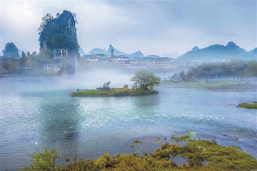 近年来,桂林市以中央、自治区生态环境保护督察反馈意见问题整改为契机,全面贯彻绿水青山就是金山银山理念,实施漓江流域系统治理和系统修复,水质提升、植被覆盖、生物多样性等方面取得了明显成效。桂林漓江、灵渠入选国家美丽河湖治理案例,漓江保护经验做法获国务院通报表扬,桂林市入选联合国生物多样性“自然城市”、全国首批生态产品价值实现机制试点城市。深秋十月,记者深入漓江流域探访看到,对栖息地环境质量要求较高、享有“环保鸟”美誉的白鹭又飞回来了。