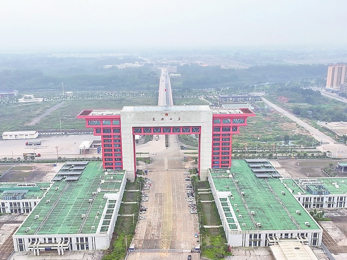 2023年,中国—东盟产业合作区东兴产业园区成功列入国家沿边临港产业园区重点战略布局,纳入中国—东盟产业合作区建设框架。园区规划面积40平方公里,包括“4个片区+互市区”,即启动区(东兴口岸二桥片区)、高铁新区、冲榄工业园区、江平工业园区和东兴边民互市贸易区。园区按照一区多园和园中园模式建设,布局发展“4+3+2”(“轻纺服装、电子信息、玩具、医药产业”+“边贸加工、海鲜冷链、口岸物流产业”+“绿色家居建材、新能源材料产业”)产业体系,打造沿边开放创新引领产业园区、跨境产业合作示范园区。