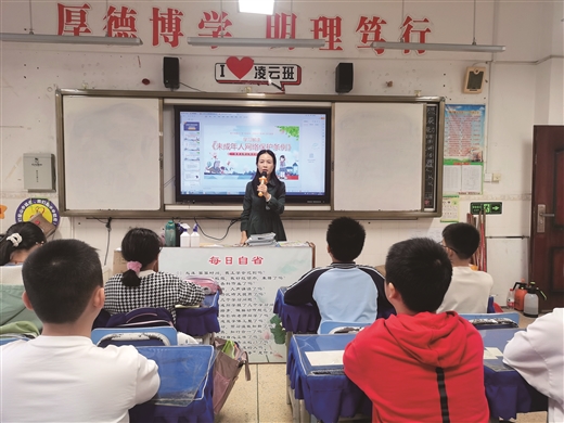 近日,南宁市秀田小学六(1)班开展“未成年人网络保护条例”主题活动,老师结合例子讲解未成年人网络保护条例有关知识。 陈高丽亚 摄
