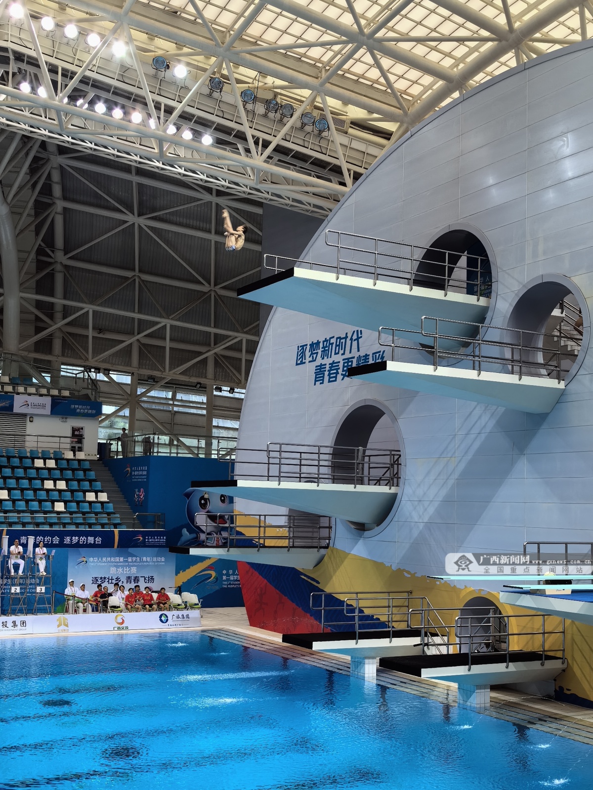 据了解,作为首届学青会游泳、跳水比赛的比赛场馆,广西体育中心游泳跳水馆今年全面进行了升级改造,并通过国家体育总局验收。