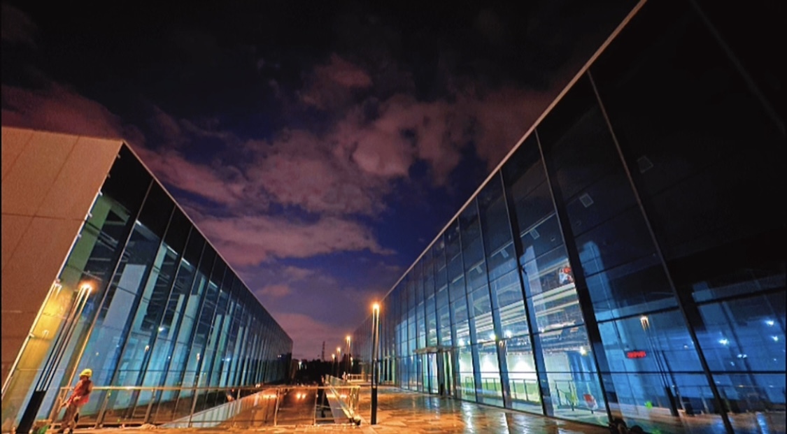 夜色和灯光映衬下的三塘体育训练比赛基地。记者 苏华 摄
