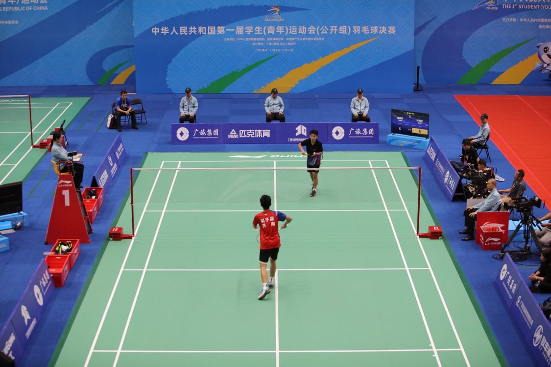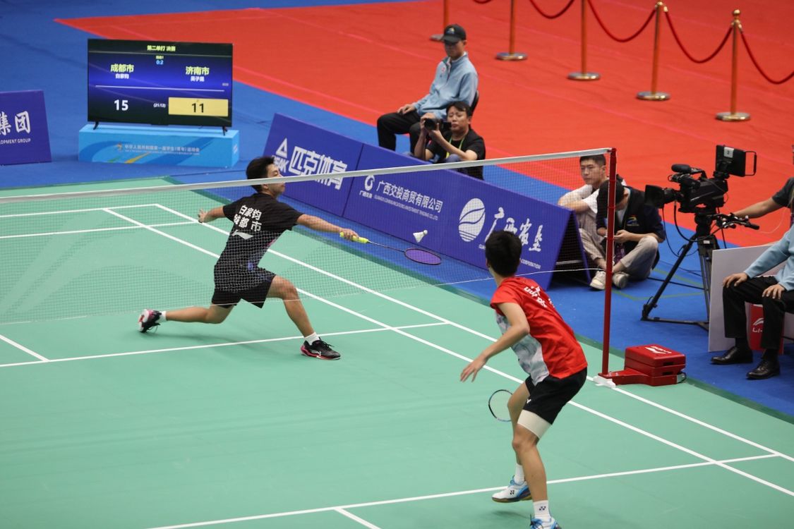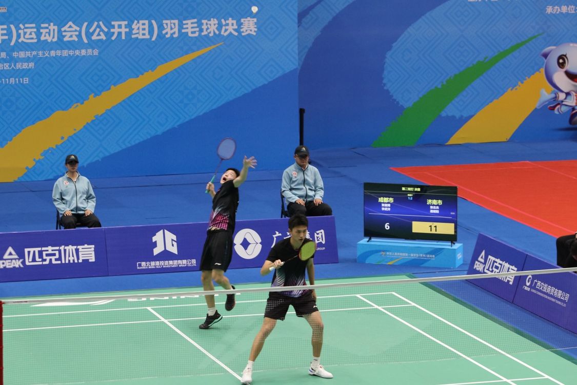 11月8日,第一届全国学生(青年)运动会(公开组)羽毛球团体赛在广西大学综合体育馆进入最后一个比赛日的争夺,济南队战胜成都队,获得男子团体项目的金牌。