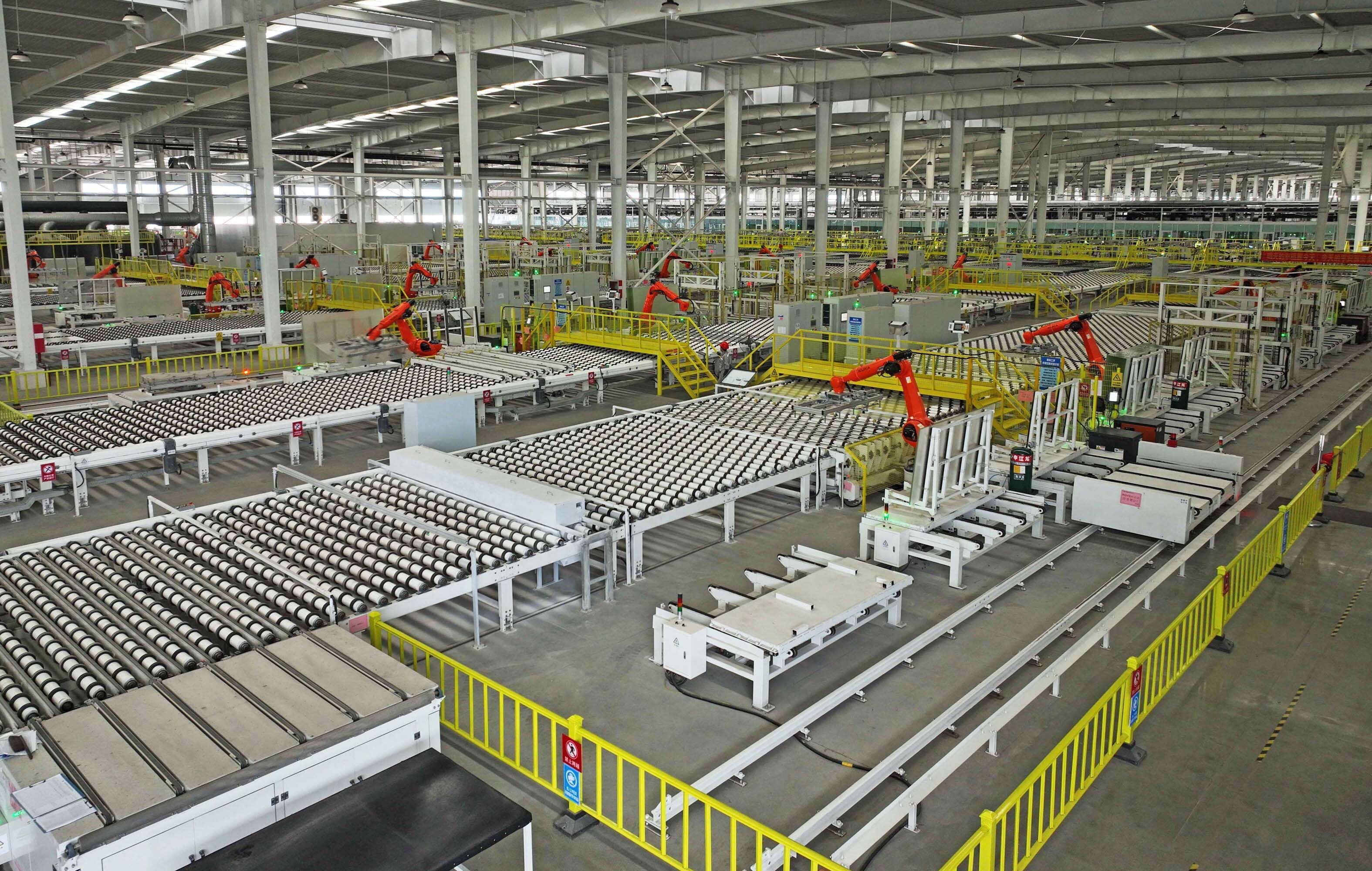 繁忙的广西新福兴硅科技产业园光伏玻璃自动化生产线。李君光 摄