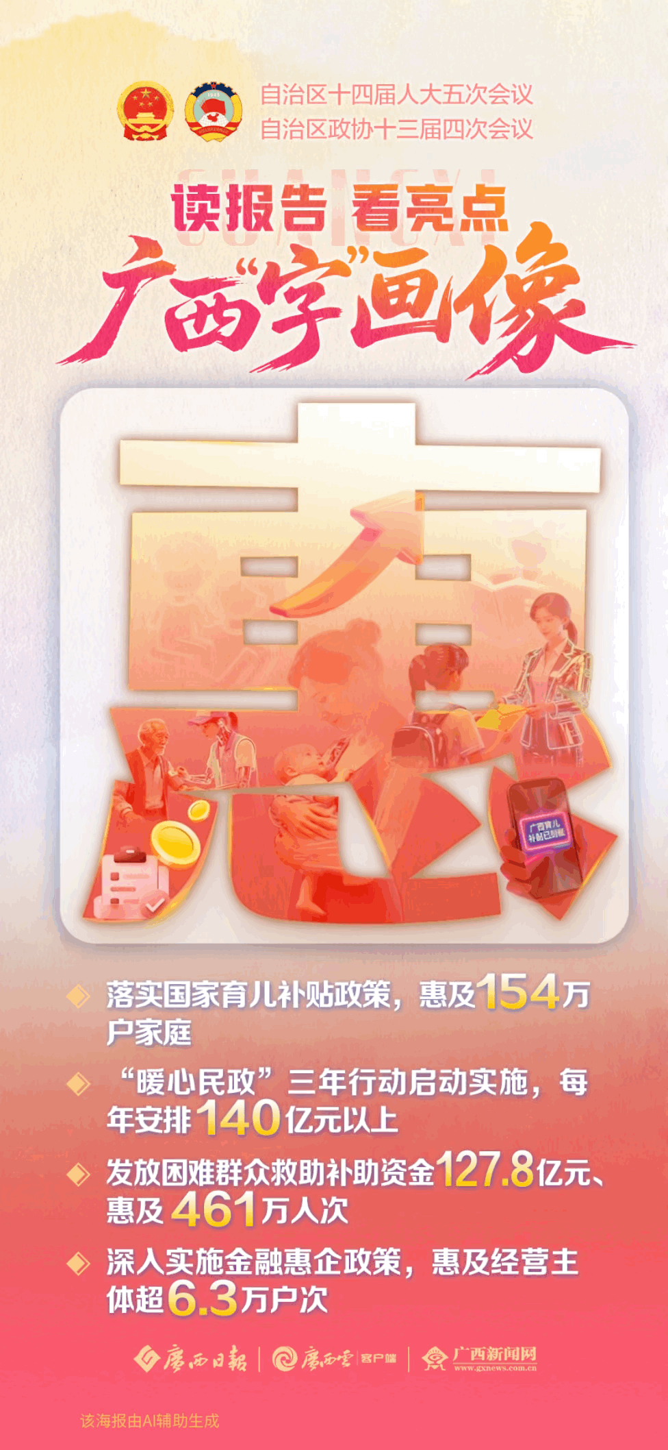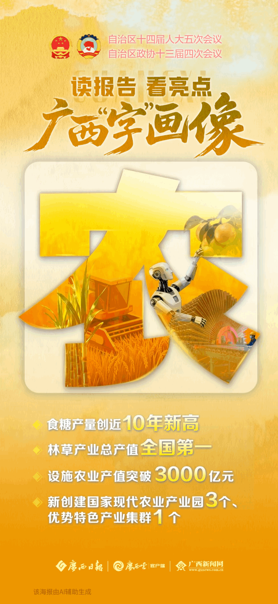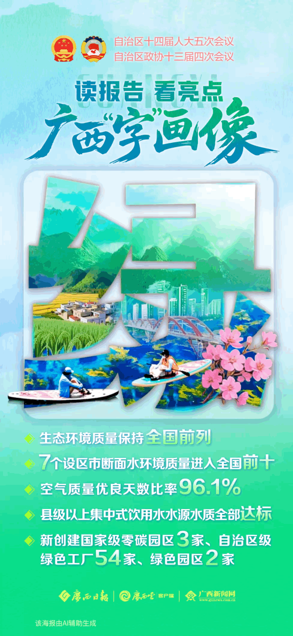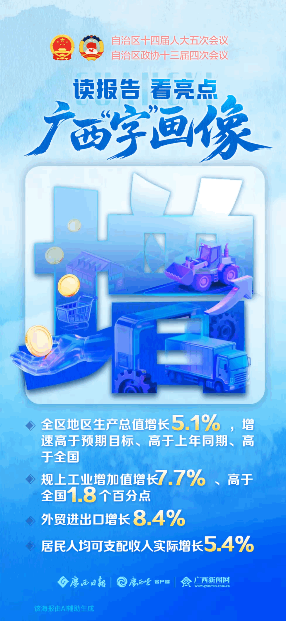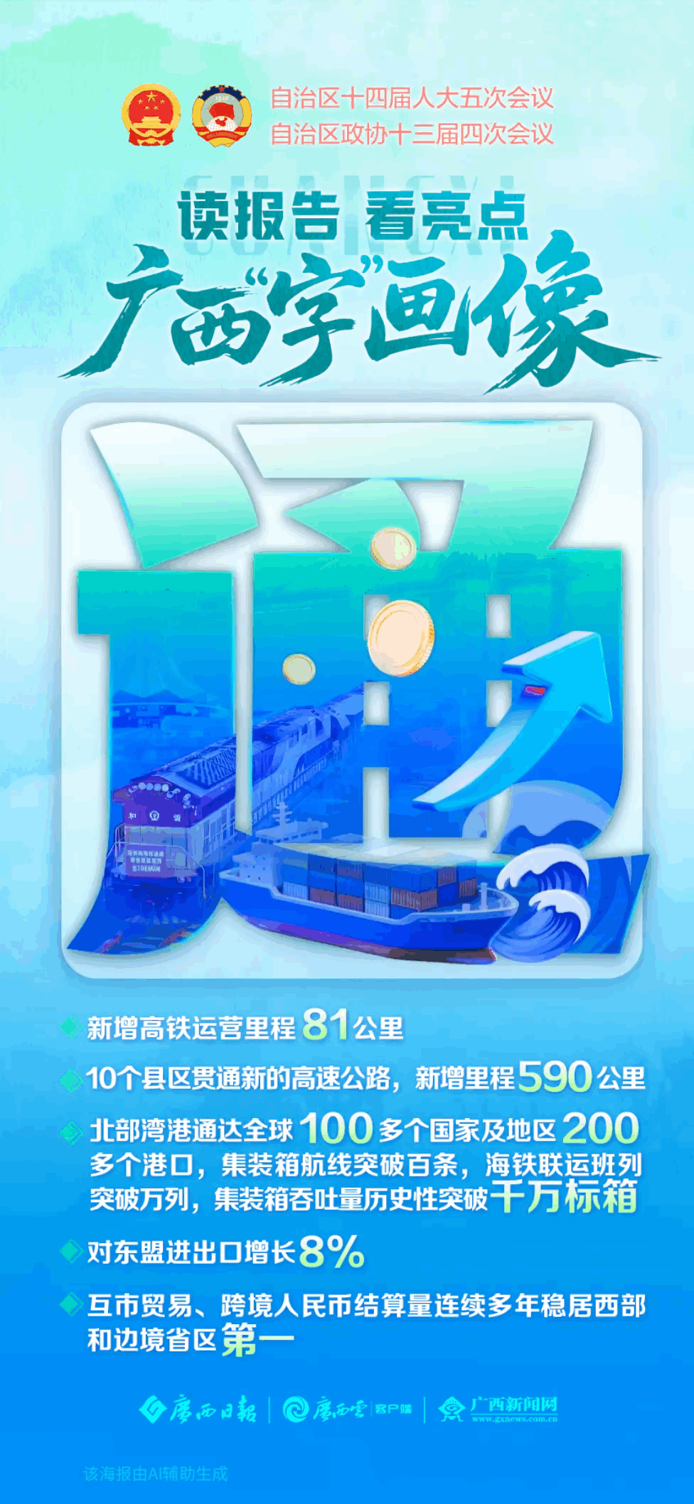 《读报告 看亮点|广西“字”画像》动态海报,用九个关键字带你解码政府工作报告中的亮眼数据,回顾一年来广西发展答卷。一起来看↓↓↓