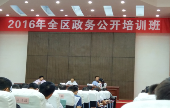 2016年,全区加大了政务公开业务培训力度,采取“请进来”、“走出去”相结合的方式,做到“办出特色、办出实效、办出水平”。一是组织了高水平的全区性培训。11月中旬,举办了2016年全区政务公开培训班,组织自治区各部门和各市、县的政务公开业务骨干参训,邀请国务院办公厅领导和自治区高级人民法院、自治区法制办、自治区新闻办等专家授课,内容涉及政务公开背景和趋势、政府信息公开司法实践、政府信息公开行政复议、新闻发布和舆情回应、政务公开顶层设计及文件解读等诸多内容。自治区政务服务监督管理办公室主任王西冀在培训班上的讲话指出:政务公开已成为新时期治国理政的标志,贯穿政务运行全过程,各级各部门要在创新公开方式上大胆探索,在互联网时代要切实做到“四个一”:要担当第一责任,谁有公开的权限,谁就要承担相应的责任,领导干部担当起政务公开的第一责任;要做好第一新闻发言人,遇到特别重大、重大突发事件的政务舆情,主要负责人要带头接受媒体采访,发出权威声音;要强化第一平台建设,打造出更加及时、准确、公开透明地发布信息的公开平台;要抢先第一个发声,各级各部门领导要不断增强第一个发声的主动性、针对性和实效性。二是通过召开全区政务服务政务公开政府信息公开电视电话会议,印发全年工作要点等方式指导各级各部门开展信息公开工作。三是加强培训和理论研讨。除了每年举办政府信息公开业务培训班外,全区高度重视依申请公开政府信息的研究,连续三年举办了政府信息公开研讨会。邀请法制办、法院以及高校的业务骨干和专家、学者,学习、研究相关典型案例,关注热点、加强研判,厘清在新形势下做好政府信息公开申请工作的思路。2016年,全区各级行政机关举办各类政府信息公开培训班1000余次,培训人员6.42万人次。