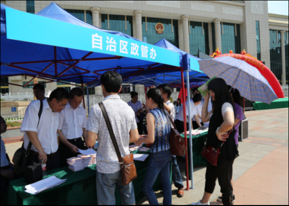 2016年5月10日到31日,全区各地开展了以“推进阳光透明,扩大开放参与”为主题的第四届“政务公开日”活动。活动形式主要包括现场咨询服务活动、播放专题片、在报刊开设政务公开专栏、手机通讯宣传、微博微信宣传、网络活动现场直播等。其中,现场咨询服务是最主要的活动形式。各级行政机关通过走上街头现场布展的形式,面对面为群众和企业提供政策咨询、办事咨询服务,“零距离”回应社会关切。据统计,全区各地在开展“政务公开日”活动中,各级行政机关共接待群众现场咨询11.56万人次,解答问题3.57万个,发放宣传资料65.57万份。