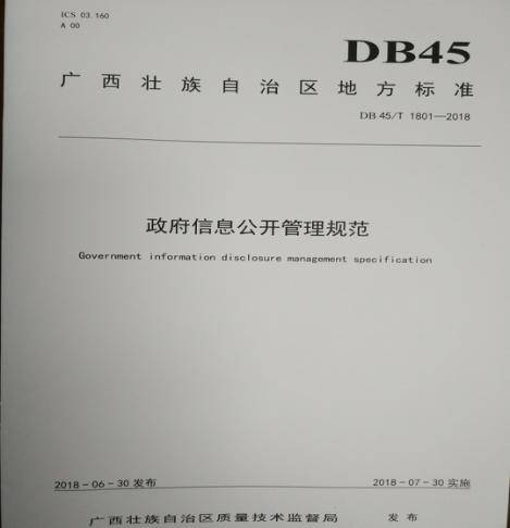(一)健全政务公开制度,提升政府工作透明度。2018年,编制《政府信息公开管理规范》(DB45/T1801—2018),对115项工作指标进行规范,是政府信息公开领域全国首个推荐性地方标准,规范各级各部门政府信息公开工作,政务公开工作更加规范高效。