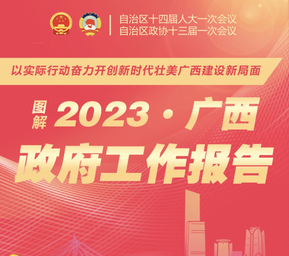 2023年是全面贯彻落实党的二十大精神的开局之年,是落实习近平总书记对广西“五个更大”重要要求、全面建设新时代壮美广西的起步之年。全区各级各部门要坚持以习近平新时代中国特色社会主义思想为指导,坚定信心稳增长、更好统筹开新局,坚决完成自治区《政府工作报告》提出的各项目标任务,以实实在在的成效兑现向全区人民作出的庄严承诺。